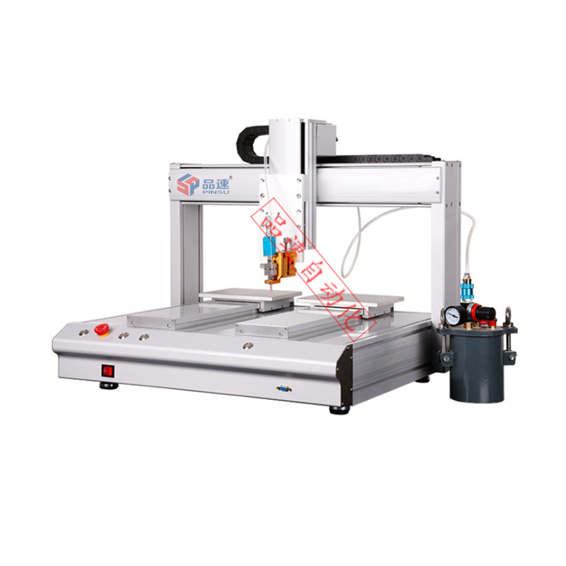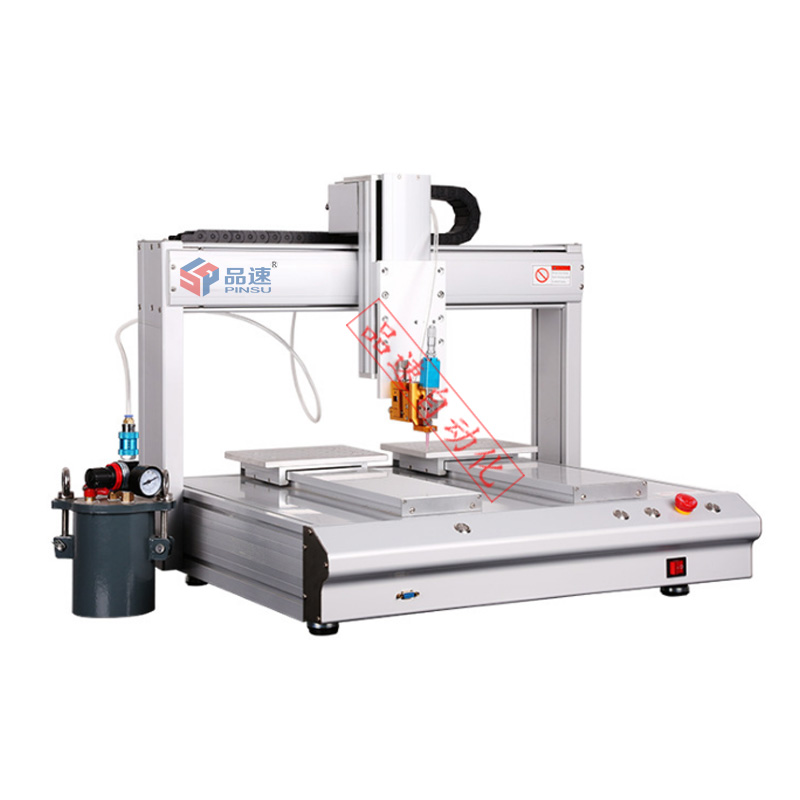 品速科技四軸自動點膠機也叫雙Y軸自動點膠機,雙Y軸工作大大增加點膠效率;出膠系統根據膠水特性和實際需求進行配置,滿足客戶不同點膠需求