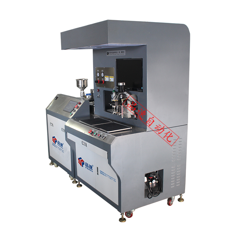 品速科技生產的PS-SJ2530S視覺點膠機由ab膠配膠機,視覺點膠機等組成,主要用于1:1-10:1環氧樹脂ab膠,聚氨酯PU膠,硅膠配比,點膠;采用1200萬像素高清工業相機,配合ccd系統,實現產品任意擺放在工作臺面上,無需治具,機器自動識別,自動定位。ab膠通過精密計量泵計量,然后再通過管道輸送至混合閥混合出膠,混合閥配自動回吸功能,不拉絲,不滴漏。