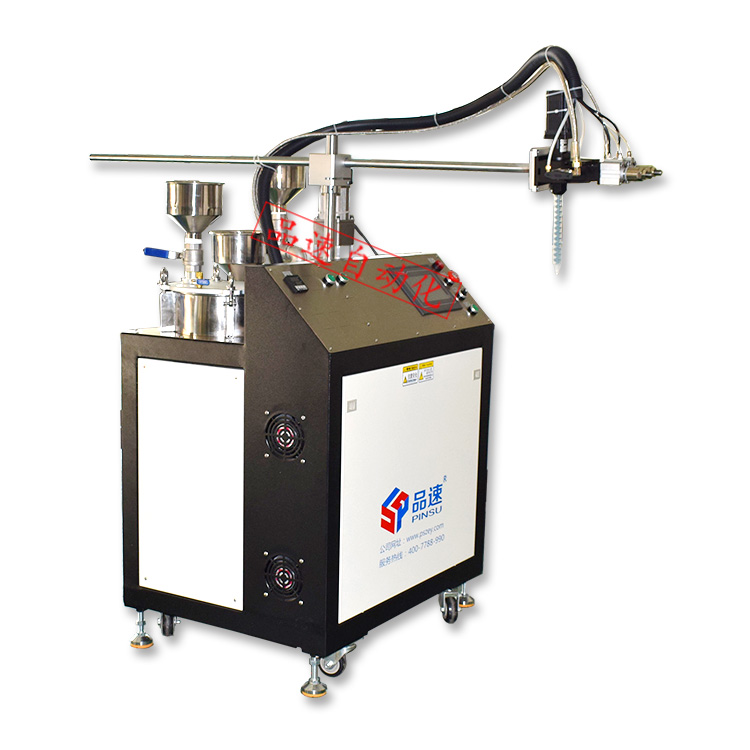PS-PJ220自動配膠機,由品速科技自研,專用于雙組份AB膠水精確配比,定量出膠,配膠精度±2%。PS-PJ220自動配膠機兼容自動化生產線或獨立使用.