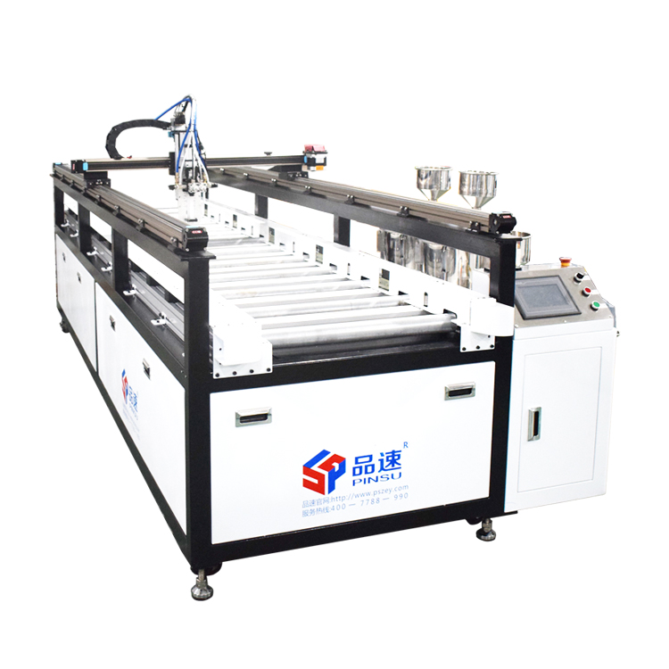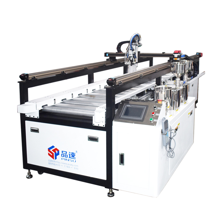 在線式自動灌膠機(一體化滾筒線)由品速科技獨家設計生產,適用于環氧樹脂ab膠,聚氨酯膠,硅膠等雙組份膠水灌膠;不僅可用于大理石,瓷磚、背景墻、移門淋膠封釉,也可以用于電源,顯示屏、玻璃、燈條、高壓包等產品灌膠。