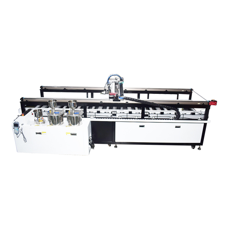 在線式自動灌膠機(一體化滾筒線)可以用于大理石,瓷磚、背景墻、移門淋膠封釉,也可以用于電源,顯示屏、玻璃、燈條、高壓包等產品灌膠。