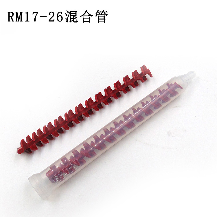混合管是一種應用在多流體攪拌的新科技產(chǎn)品,由一連串的上下左右旋葉片,依序相互垂直排列在套管內(nèi)組合而成。RM12-16、RM12-26、RM17-16、RM17-26動態(tài)混合管適用于各種類型自動灌膠機,客戶可以根據(jù)灌膠需求選擇適合的混合管。